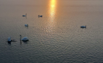 Imaginea zilei. Lebede si apus de soare pe lacul Cernica.28-03-2024.