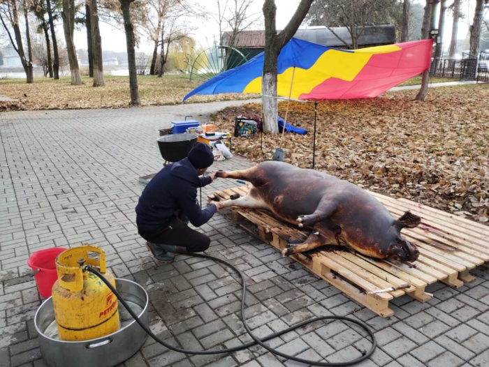 După ce porcul este tranșat și depozitat corespunzator urmează partea cea mai plăcută a zilei și anume "pomana porcului" la tigaie sau la ceaon, cu țuică fiartă - din nou, mamaligă, murături și binenteles vin roșu din anul curent, din gospodaria proprie (tot pe vremuri, acum fiind de fapt foarte putini care mai produc vinul din vita-de-vie proprie).